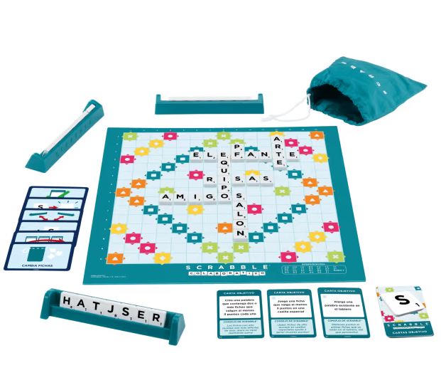 - EMOCIÓN DUPLICADA. Entra en el mundo colaborativo de Scrabble 2 en 1™, donde el trabajo en equipo es la clave para alcanzar el éxito. Enfrenta el desafío de completar 50 Cartas de Objetivo que enseñan los fundamentos de Scrabble® para toda la familia