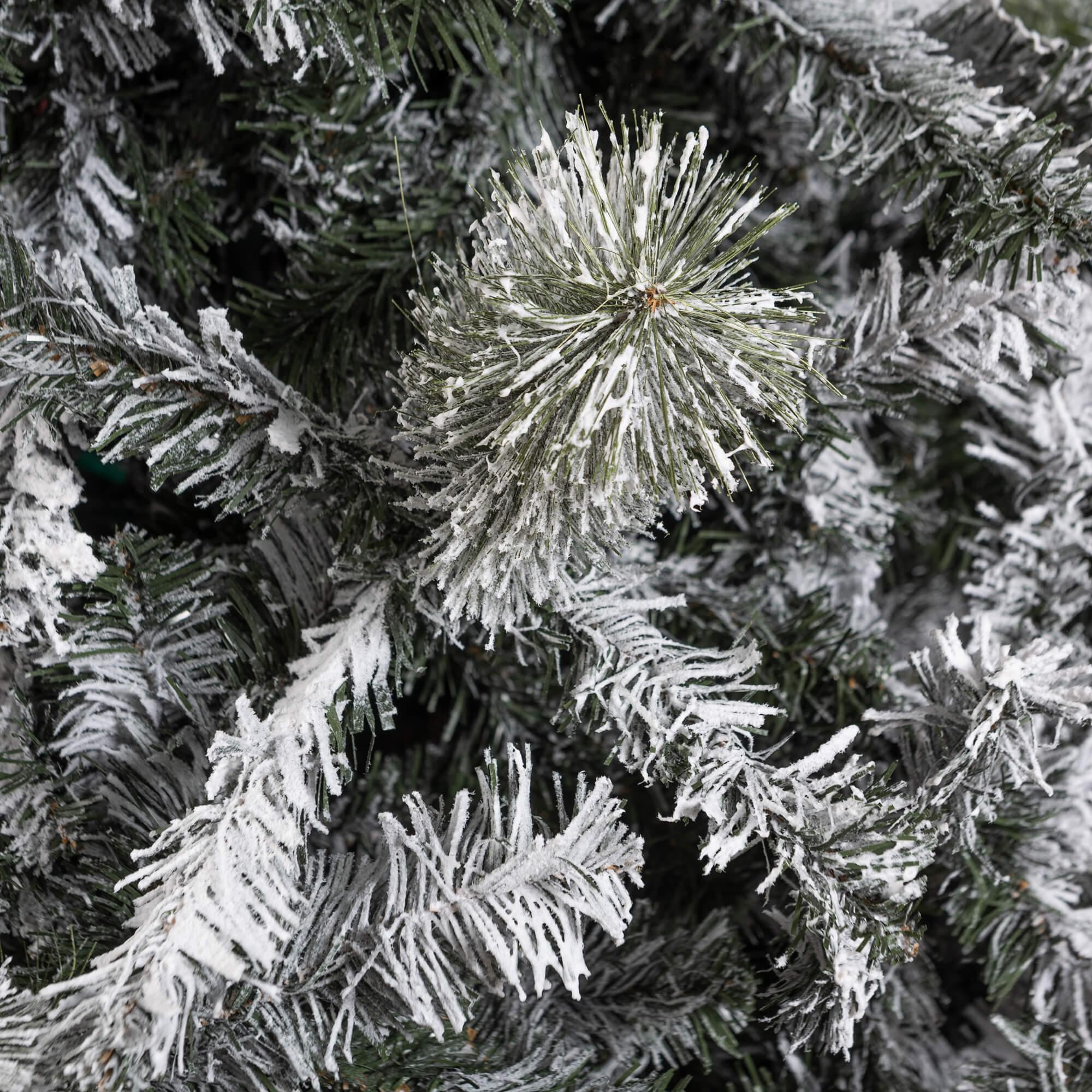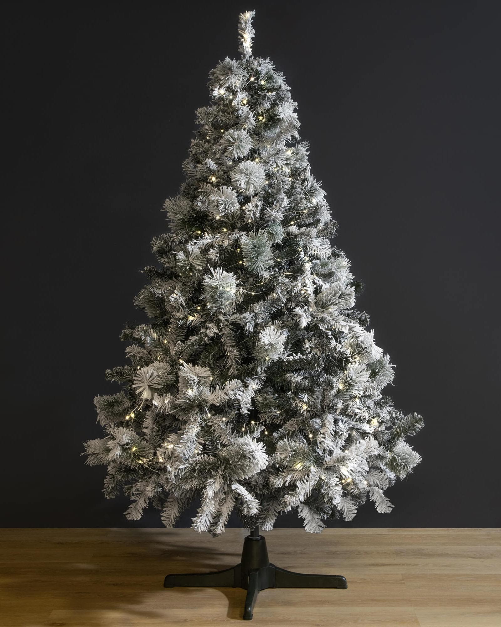 Este árbol de Navidad flockizado es una opción perfecta para quienes desean una decoración navideña elegante, original y con carácter. Su follaje verde oscuro con efecto nevado crea un contraste visual impactante que se presta maravillosamente para estilos modernos y sofisticados. Si lo decoras con luces cálidas, lograrás un ambiente acogedor, ideal para las noches decembrinas. Acompáñalo con cintas negras, bolas decorativas en tonos oscuros, dorado envejecido o plata para realzar su presencia sin sobrecargarlo visualmente.