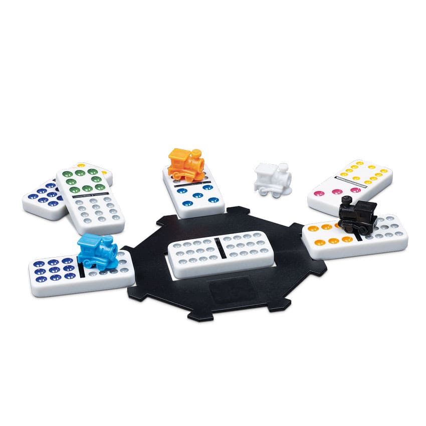 Juegue en su propio tren y en el de los demás jugadores, para ser el primero en quedarse sin fichas. La lata coleccionable del Dominó Doble 12 es ideal para el juego tren Mexicano.
