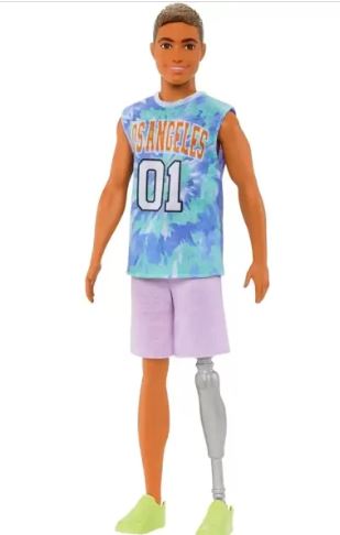 Los pantalones cortos azules le dan un estilo genial – Las zapatillas blancas completan el look dé Ken.