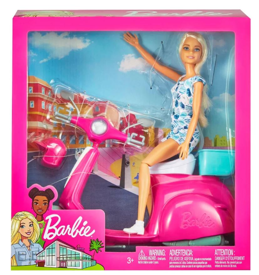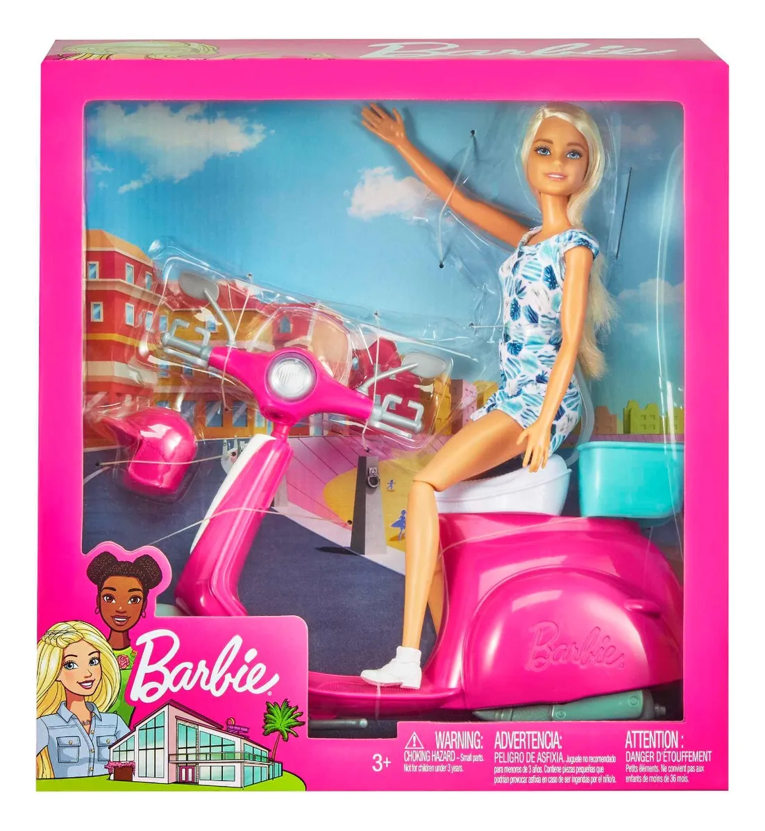 Set Barbie y Scooter, para niñas de 3 años en adelante.