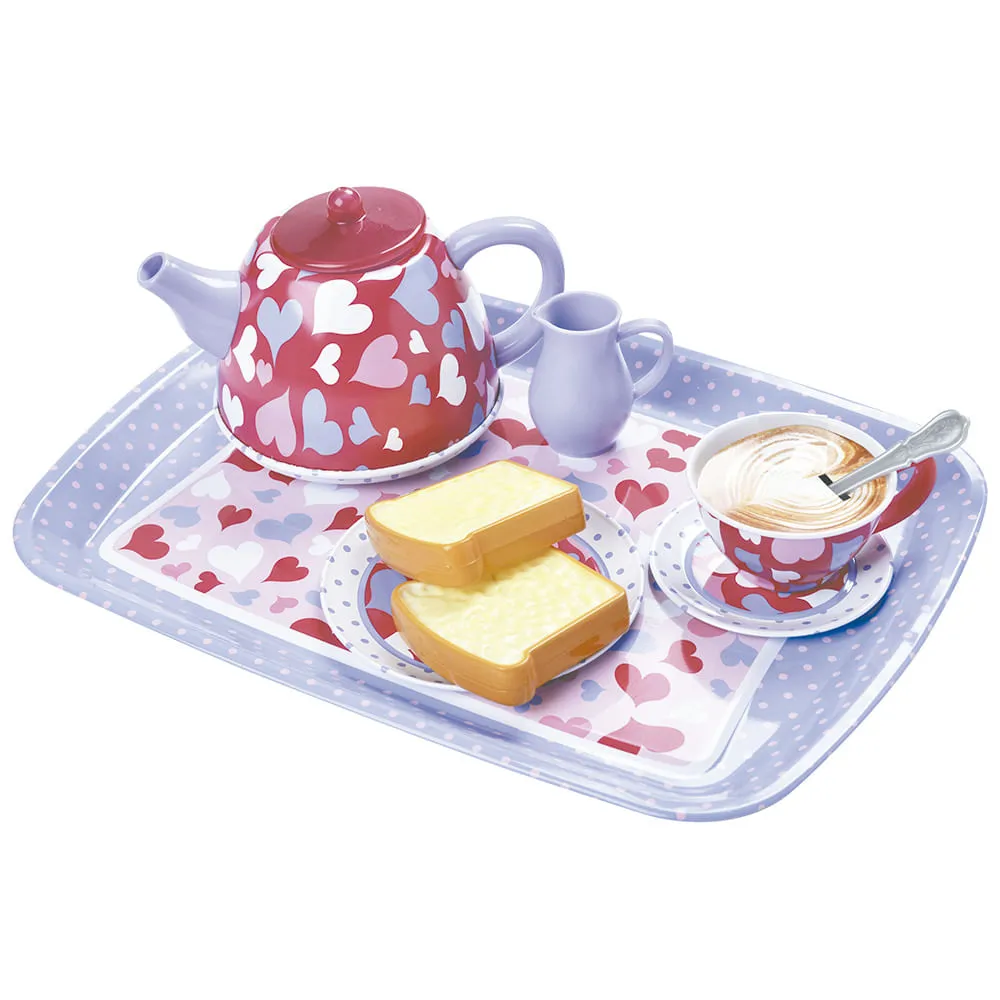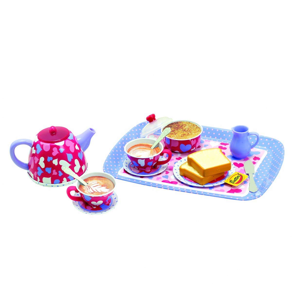 Este set está diseñado con utensilios y accesorios que recrean una fiesta de té. Incluye una tetera, tazas, platillos, cucharas y, para mayor realismo, pan y bocadillos para acompañar el té.