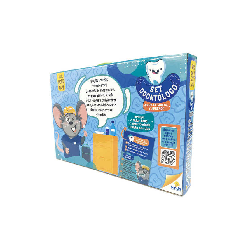 Este set incluye herramientas de juguete para que niños y niñas se diviertan mientras aprenden sobre el cuidado de los dientes. Ideal para juegos de rol que estimulan la imaginación y la empatía.